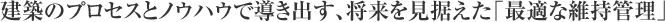 そのため、弊社では、マンションの建築プロセスを熟知したスタッフが建築ノウハウに基づいて建物と諸設備をチェックし、必要なケアを適切な時期に行うためのサポート体制を整えております。